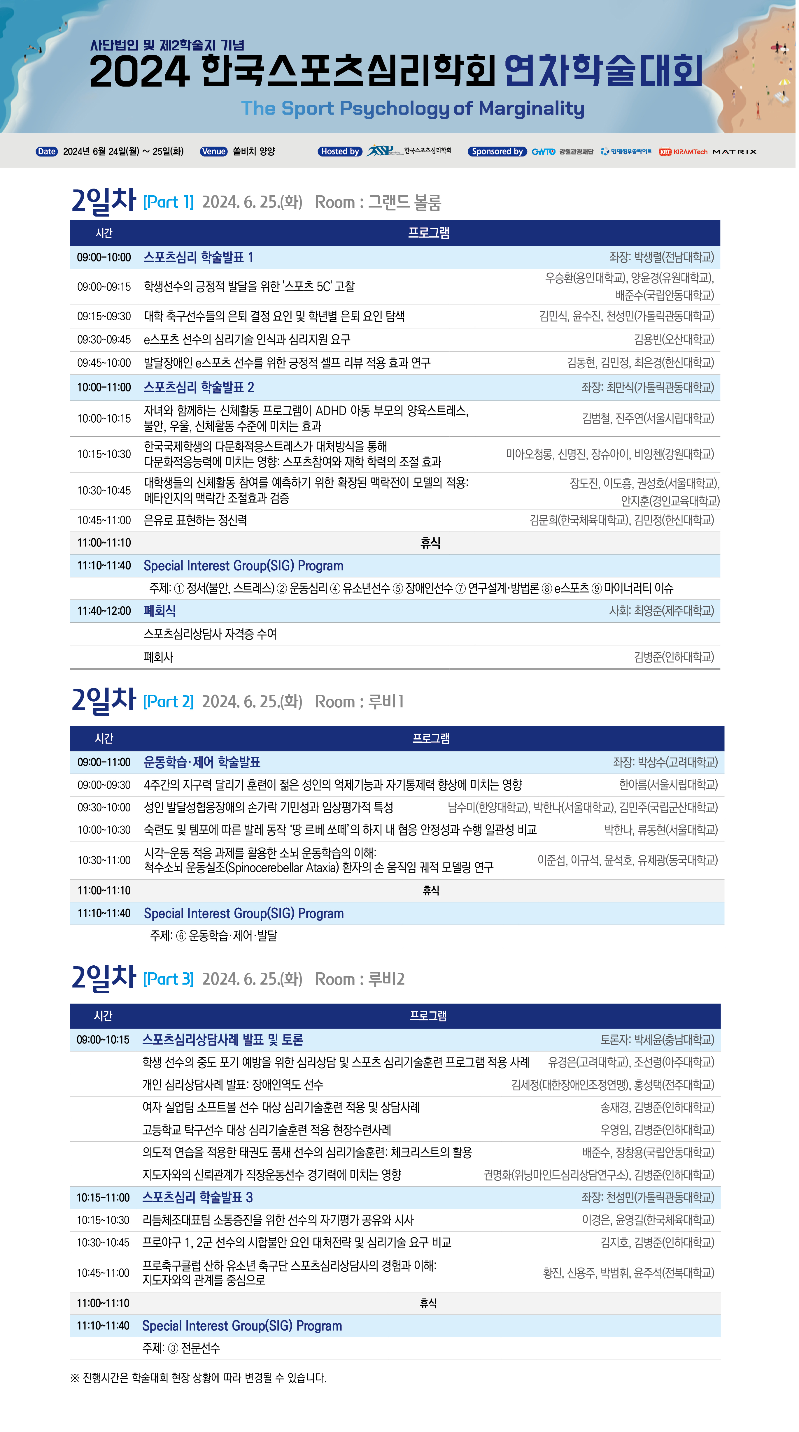 사단법인 및 제2학술지 기념 2024 연차학술대회 프로그램 상세일정표 안내
